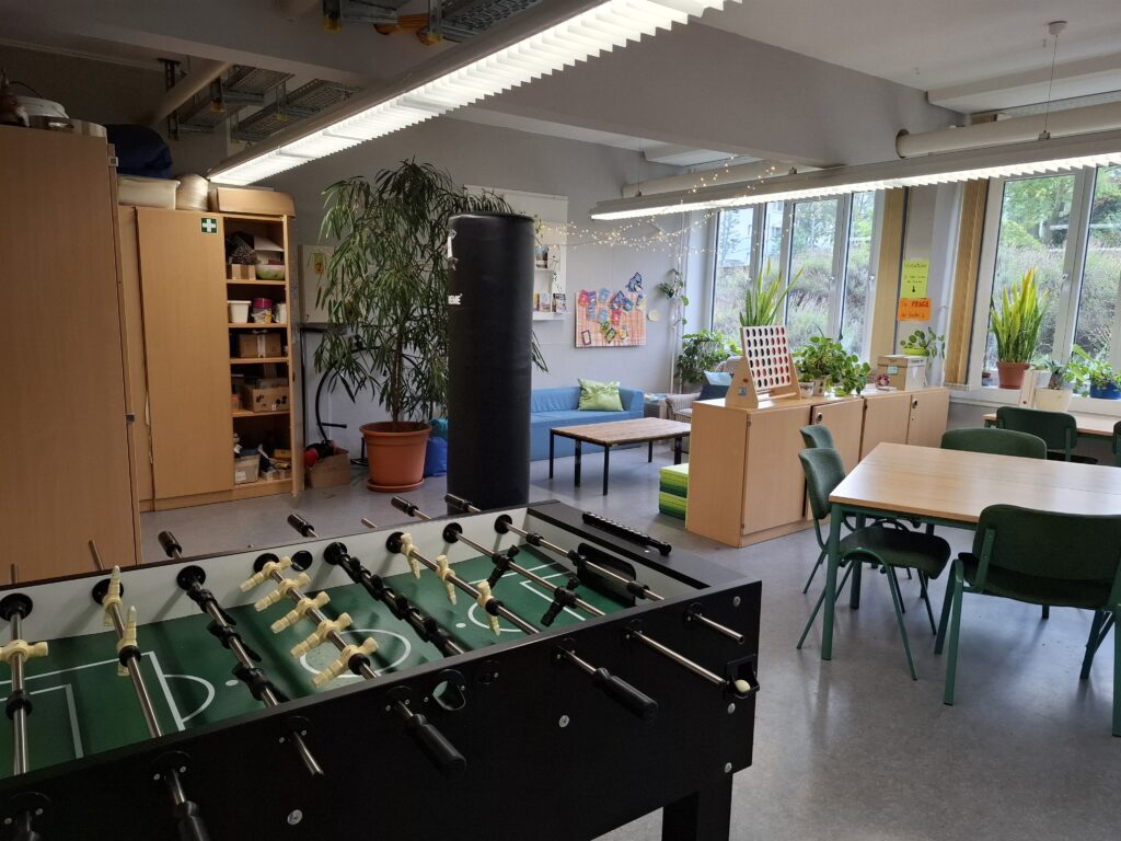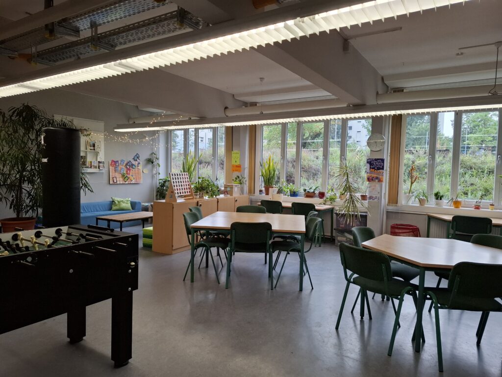 Er ist ein gewaltfreier, akzeptierender und geschützter Begegnungsort für alle Schülerinnen und Schüler, um Freunde zu treffen, Freistunden und Pausen zu verbringen, Hausaufgaben zu machen oder einfach zu entspannen.